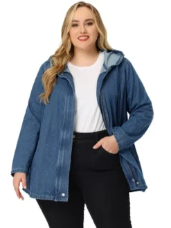 Agnes Orinda Women’s Plus Size Layered Drawstring Hood Utility With Pockets Jean Jackets