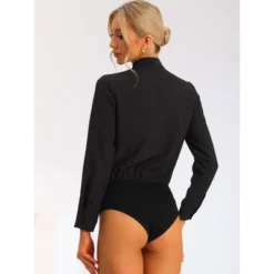 Allegra K Women’s U Plunge Tummy Control Adjustable Straps Built-in Bra Full Leotard Jumpsuit Top