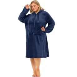Agnes Orinda Women’s Plus Size Flannel Hoodie Pocket Midi Nightgowns
