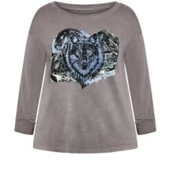 Women’s Plus Size Sadie Graphic Sweat Top – Gray | SOCIETIE+