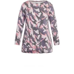 Women’s Plus Size Pocket Print Sweat Top – Gray Camo | ZIM & ZOE