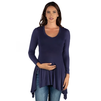 Perfect for a stylish look on a busy day. Throw on and go, this long sleeve v neck maternity tunic top is available in four stylish colors. The scoop neckline, long sleeve, rounded high low hemline and beautiful color options make this top a Fall season must have! Made from a soft comfortable material and is machine washable.