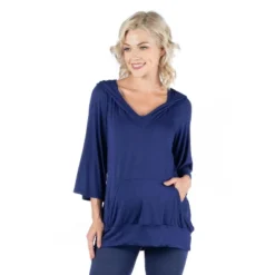 This classic A-line shape will always be in style! The sleek look has a scoop rounded neckline and long sleeves. This Relaxed and comfortable as can be, the 24seven Comfort Apparel Oversized Hoodie Top features ¾ length loose sleeves, front pocket, v-neck, and a trendy look. This women’s fashion maternity hoodie is perfect for a relaxed day.