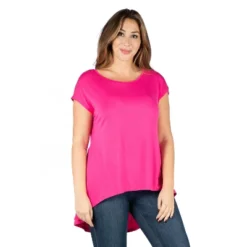 This trendy and comfortable high low tunic top features a flowing loose fit silhouette paired with cap sleeves.This top is perfect in all seasons for any ocassions and is easy to dress up or down. Designed with a relaxed comfortable fit, round neckline, short cap sleeves, and an extended high low hemline. This long tunic top can be paired with leggings, shorts, or jeans for easy casual looks. Made in the USA from a comfortable stretch material. Rayon Spandex Knit.