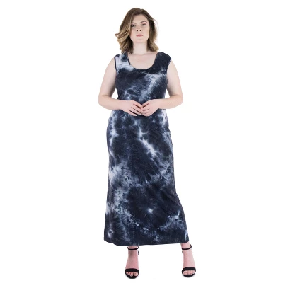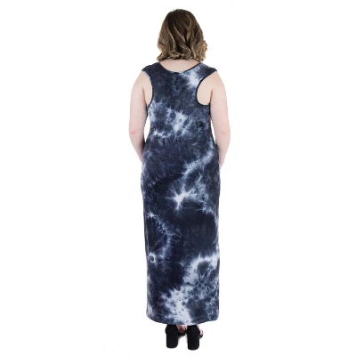 A timeless green tie dye print plus size maxi dress style with a fitted flattering shape. Featuring a tasteful scoop neckline, sleeveless razorback design, and long ankle length fit. Pair this dress with sneakers for a stylish casual look or dress it up with heels. Made in the USA from a comfortable stretch material. Polyester Spandex Knit.