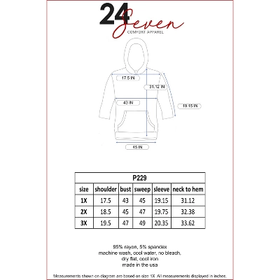 Relaxed and comfortable as can be, the 24seven Comfort Apparel Oversized Hoodie Top features ¾ length loose sleeves, front pocket, v-neck, and a trendy look. This women’s fashion plus size hoodie is perfect for a relaxed day.