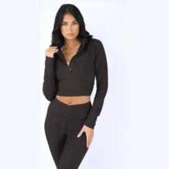Stay cool and comfortable at the gym with our ribbed, lightweight, breathable, moisture-wicking long sleeve half zip cropped pullover. Sweat from your skin will evaporate instead of being drawn into the material, thus keeping you cool and dry during your sweatiest workouts. The stretchy, buttery soft fabric is so cozy and is anything but itchy. Our women’s gym clothing is an everyday classic that can be paired with sweatpants, gym shorts, joggers, and sneakers.