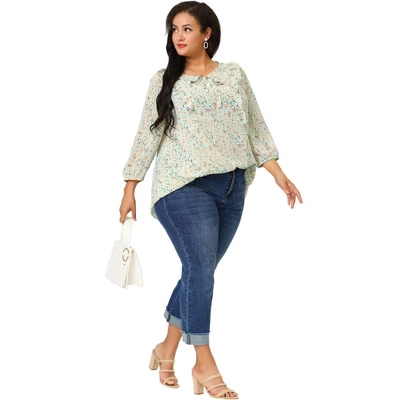 Agnes Orinda is a women’s plus-size brand inspired by the needs of the customers. Show off your perfect curves with just the right cut, and comfortable fabrics for a pleasurable experience. A romantic look is made everyday easy with this tie V-neck blouse in a flattering loose style of sheer crinkled chiffon with a dainty floral print. The shape of the top is classic and feminine, and the fit is relaxed and easy. Illustrated in a watercolor floral print and softly textured in floral chiffon, this blouse adds instant romance to whatever you pair it with.