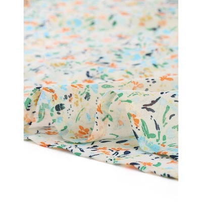 - Chiffon Knitted Fabric, Floral Pattern, Tie Neckline, 3/4 Sleeve, Soft, Light and Breathable