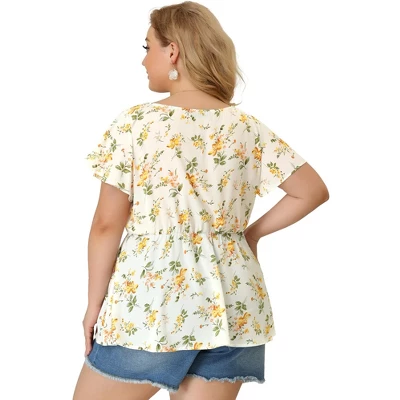 - This blouse is in a relaxed fit with floral printed, flare sleeve, elastic waist, sweetheart neck and flowy hem.