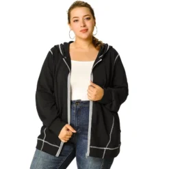 - Plus Size Jacket: Zip Front, Long Sleeve, Side Pockets
