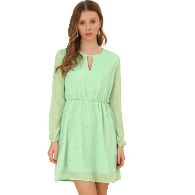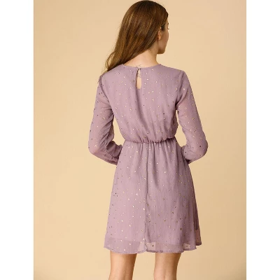 A galaxy of gilding stars brightens the chiffon fabric of this fit-and-flare with infinite celestial shine. Update your dress wardrobe for the new season with a breezy patterned lovely STAR- Print dress. A star-scattered silk dress with pretty details like a stylish checker v-neck and the elastic cliff for a fancy, and charming impression. Shiny golden stars twinkle all over the delicately sheer tulle that floats above the barely-there lining perfectly showing the feminine, elegant image.