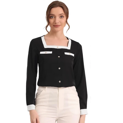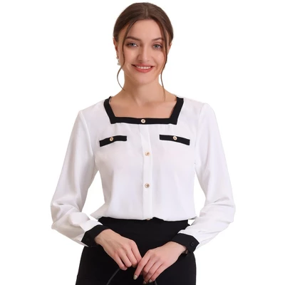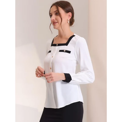 - Button Decor, Pull On, Square Neck, Contrast Color