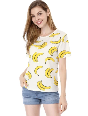 This piece with a short sleeve is cut for a comfortable, relaxed fit. Its simplistic banana print has a lightweight feel and will add a splash of color to your daytime outfits. Wear yours with shorts and sneakers. Add a splash of color to your daytime outfits with this banana tee. This banana T-Shirt features a round neck, short sleeves, and an eye-catching banana print. It is suitable for daily life, picnic, and many occasions.