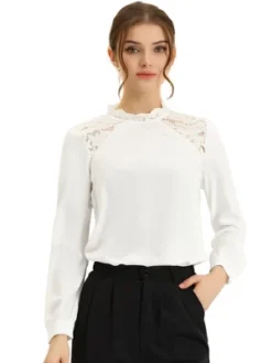 A weekday-to-weekend go-to, this blouse is always a delectable choice for your daily look! Framed with a lace neck and shoulder, this chiffon blouse is charming, feminine, and stylish. Wear with solid pants, that is perfect for daily wear or working. Suit for spring/fall and for many occasions, such as office, work, meeting, dating, and shopping.