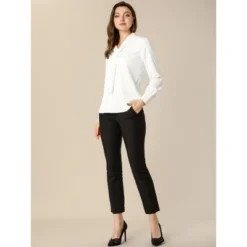 It features a classic design with a tie and long sleeves with button cuffs, creating a fitted silhouette, especially for work or office. Designed in a fluid, flowing fabric that drapes beautifully around the body. Offering effortless style, the blouse falls beautifully on the body and features a subtly pleated design to add to the delicate nature.