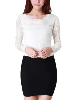 Amp up your ensemble’s feminine appeal with this all-over floral lace top. This lace top features a scalloped round neck, sheer long sleeves, and a slim silhouette. It is suitable for working, parties, shopping, and many occasions. Slight stretch fabric creates a breezy, textural base for this lace top, which is accented with a puff sleeve for a feminine dimension.