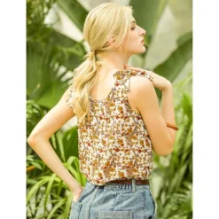 - Floral Prints, Scoop Neck, Partially Lining, Bow Tie Decor on the Shoulder, Tank Tops