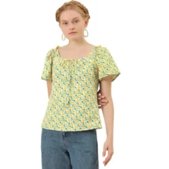 Flutter sleeves and a surplice silhouette make this floral blouse oh-so romantic. The floral brings a breezy feel to this raglan-sleeve top, finished with ruffles at the shoulder. For days out in the warm weather, this Allegra K top is a fun option that will work with almost any of your separates. Charm all day long in this floral-printed top cut in a relaxed silhouette with a sweetheart neckline.