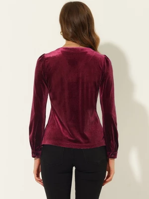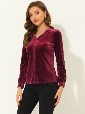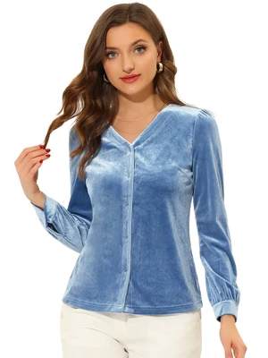This soft velvet button blouse features long sleeves and button cuffs. Be out past midnight in this v-neck velvet shirt and still look elegant.Suit for work, casual, night out, etc.Pairs great with your jeans or pants with heels.You can enjoy this fancy retro work velvet button-down shirt in your own style.