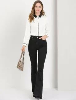 Create an endless look in this piping button-up shirt. Perfectly match your trousers and heels for a charming look. The contrast piping brings a modern style to this button-up shirt. Showcase your business style in this button-up shirt. It features contrast piping decor and a Peter pan collar. The contrast collared shirt is a perfect gift for your girlfriend, wife, mother, sisters, or friends.