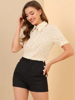 The lovely floral print makes a vintage statement on a short puff sleeve blouse in a regular silhouette. In a beige-based floral print, this blouse from Allegra K boasts puff sleeves and premium chiffon. Gently shaped with pintuck detailing along the round, split neckline, wear it to the office with tailored trousers and block heels for a sophisticated look. Retro and trendy, the blouse presents a feminine and demure aesthetic with its vinrage floral print.