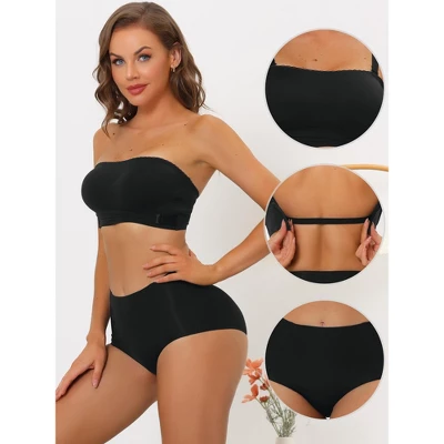- 4 Front Buckles, 3 Pcs Removable Straps, 4 Back Hooks, Removable Padded, Wireless, Anti-Slip, Strapless Lingerie Sets, Solid, Smooth Brief
