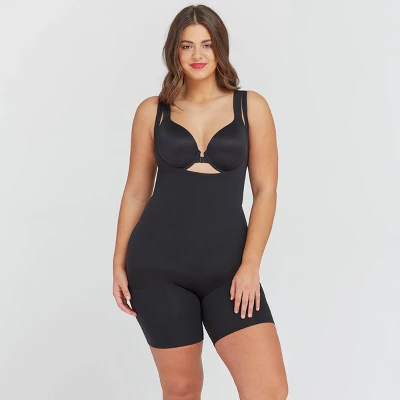 Talk about three for one! This open-bust bodysuit uses breathable, comfortable compression to tone the tummy and hips, and give you a perky rear view. Best of all? The full-coverage design is made from soft, cling-free fabric for additional comfort and is also seamless for invisible layering under your clothes.