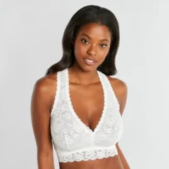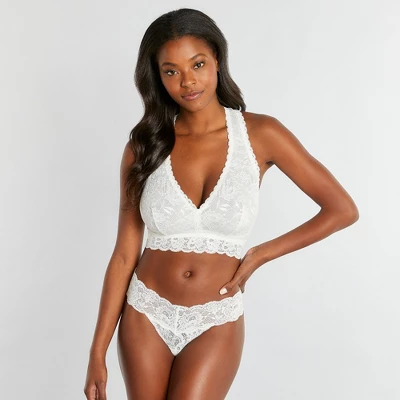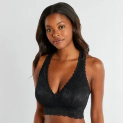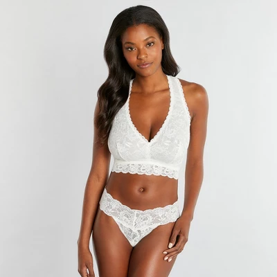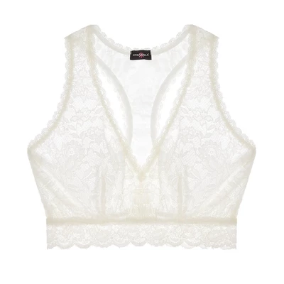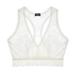 Receive all-day support and comfort with the Cosabella Never Say Never Curvy Racie Racerback Bralette. This bralette is specifically made for larger cup sizes with a smaller band. This wireless bralette style has a racerback design, made with Cosabella’s signature floral lace. Complete with a deep V neckline and scalloped edge trim for a flirty look.