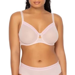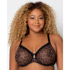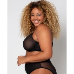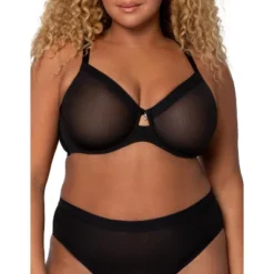 Our sexiest bra to date, this sheer mesh style is an everyday bra with two layers of sheer mesh molded cups. A plunging stretch neckline detail offers perfect contoured coverage. Its a great option for the full-figured woman who likes a natural bust shape. The exceptional fit & support you know and love from Curvy Couture, this plus size sheer unlined bra gives you sexy & comfort all in one! Sheer see-through unlined cups with two layers of mesh