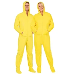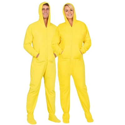 Bright as the sun and so much fun! These lemon yellow footie pj’s are made for both men and women! Soft, plush fleece blankets your entire body in warm, luxurious fabric while hoodies and pockets make them as stylish and practical as they are cozy! Inclusive sizing options will ensure everyone finds just the right fit! Regular and plus size onesie pajamas have never looked so good and felt so great!