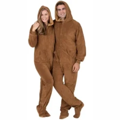 Both men and women will be soft and cuddly as Teddy Bears in these super plush brown onesies! Snuggle up in luxurious comfort from head to toe in these pajamas with feet, hoodie’s and soft pockets! Hibernating through the winter sounds wonderful when wearing the coziest sleeper suit!