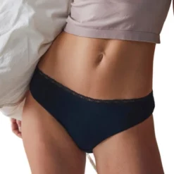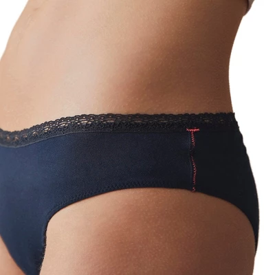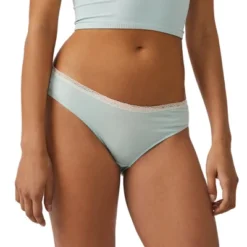 Designed with intention in a certified sustainable modal fabric, these lace trimmed bikini briefs can be worn with comfort and good conscious every day. The flattering low rise style features an elastic waistband and provides moderate coverage. This low-impact pair is ultra-soft, compostable, and biodegradable to feel good and look good, too.