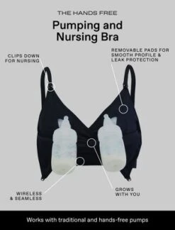 Introducing our dual function seamless nursing & pumping bra. The outer fabric layer clips down to access inner layer with slit opening to insert pump flange, and hold in place hands free while pumping. Inner layer also keeps the breast covered, offering discretion for mom if she finds herself needing to pump in a not so private environment. Inner surplice layer pulls down to fully expose the nipple for nursing. This bra gives mom the ability to nurse baby on one side, while pumping the other if needed. Constructed using the same great frame, fit & fabric of our best-selling Seamless Nursing Bra!