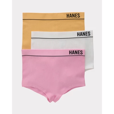 Hanes seamless rib boyfit panties bring the comfort and the style too. Soft, stretchy, and pleasantly textured, these Originals seamless rib classics feature a high waist and the boyfit you love. Seamless construction, a smooth waistband, and added coverage help erase panty lines. Made from a blended knit fabric that includes just the right amount of spandex, this women’s underwear is designed to move with you. Wear as a comfortable bottom layer when you’re out on the town or as a top layer for lounging around the house – they are as versatile as they are comfortable. Know what’s even better? No tags equals no annoying itch.