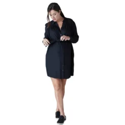 This maternity shirt dress was clearly designed by a werking woman. Not just any woman, a mom. Those poet sleeves, that beautiful drapey silhouette, and all the different ways to wear. The buttons all the way down and on the sleeves & an optional sash allows for endless possibilities. It’s a no brainer office appropriate wardrobe addition.