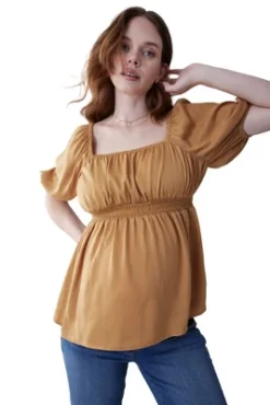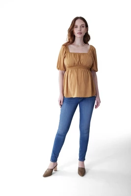 You’ll love us for creating this stretchy smocked maternity top with the most luxe sateen fabric. Its subtle puff sleeves hit just above the elbow and ICYMI square necks are flattering on literally everyone — so we gave this one a square back, too, for good measure.