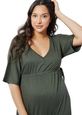 This jumpsuit’s crazy comfy and a staple for everyday wear. Adjustable draw cords cinch at the waist for a just-right fit whether you’re 8 months preggo or a brand-new mom. Just step in and throw on a pair of sneakers or heels. With a cool textured knit and deep V in the front and back (nursing access, anyone?), it’s that day-to-night piece your wardrobe needs.