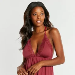- Plunge-neckline slip chemise with dainty lace details