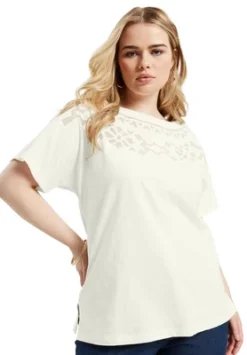 Effortless-yet-polished, this boatneck top balances its boxy silhouette with short dolman sleeves and delicate openwork details to lend a touch of romance to every outfit.