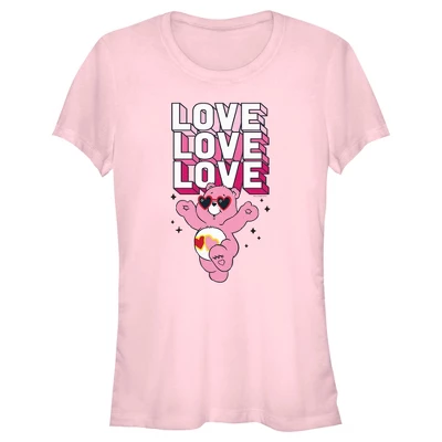 - Strut your stuff with this stylish new Valentine’s Day juniors’ t-shirt that is perfect for your sweet valentine! Featuring Love-a-Lot Bear jumping for joy along with the word “Love” printed in white lettering above her.
