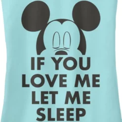 - Strut your stuff with this stylish new everyday juniors’ racerback tank top that is perfect for every occasion! Featuring Mickey Mouse with his eyes closed and the phrase: “If You Love Me Let Me Sleep,” across the front.