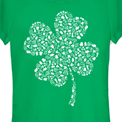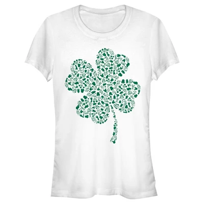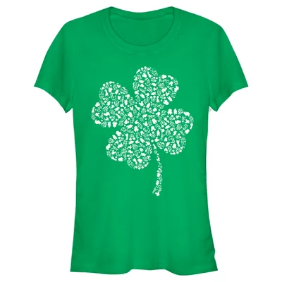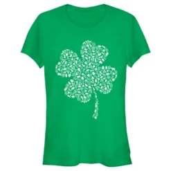 - Strut your stuff with this stylish new juniors’ t-shirt that is perfect for St. Patrick’s Day celebrations! Featuring a large graphic of a shamrock filled with various Mickey Mouse characters, including Minnie, Donald, Daisy, Pluto, and Mickey himself.