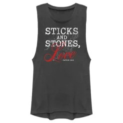 - Strut your stuff with this stylish new every day juniors’ festival muscle tank top that is perfect for every occasion! Featuring Jack Sparrow’s famous quote from the film: “Sticks and Stones, Love” in white and red distressed script font.