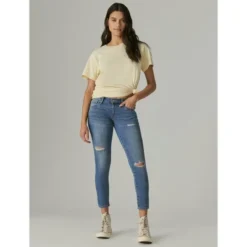 The Lucky Brand Women’s Low Rise Lolita Skinny is a great addition to any wardrobe. This represents great quality and style, with the care and attention that stays true to the rich heritage of Lucky Brand. A feel-good skinny jean with a contoured waist, our Low-Rise Lolita Skinny jean shapes your backside to look great from every angle. With a skinny fit from the top through the ankle, this style is designed to show off your curves.Low rise with a skinny fit and skinny leg. Medium vintage wash denim. Comfort stretch. 5-pocket styling with button-and-zip fly. Rise: 8 inches; Leg opening: 10 inches (size 27)