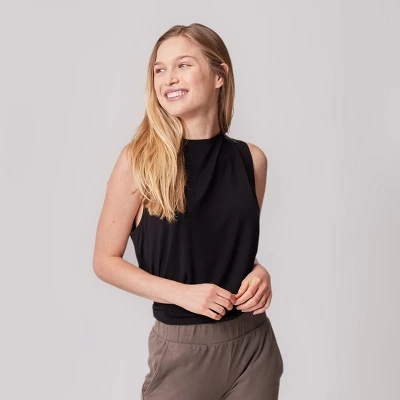 - Sleeveless tank top with wide shoulder constructed from super-soft ethically sourced viscose from pine