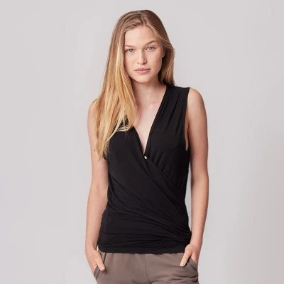 This stylish wrap tank top was designed to evolve through all stages of motherhood, from pregnancy, postpartum, breastfeeding, and beyond. Made in super soft viscose from pine, designed for quick feeding access, with versatile styling to fit your evolving needs. Flattering V-neck front with snap closure, two bottom snaps at the hips that can be wrapped all the way around for added versatility. Wear tied over your bump while expecting, loose postpartum, and wrapped all the way around when you want a fitted look. Reverse and wear V in the back and crewneck front. No baby, no problem! Our versatile style is flattering and oh so comfortable on anyone!Size tip: Order a size down if you are postpartum or at your pre-pregnancy weight. If you are expecting, order your usual pre-pregnancy size. The wrap top is designed oversize to allow for mutliple wrapping and styling options. Responsibly made in Peru. Fair Trade certified by PromPeru.