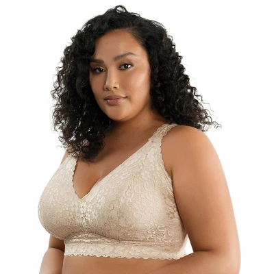 Pretty and lacy, this wire-free bralette is very supportive and super comfortable. The convertible J-hook feature allows for a racerback option. This wire-free bra is a everyday comfortable lace bra. It has soft microfiber lined cups, flexible side boning and smooth structured elastic band. It’s designed with extra support for fuller bust.
