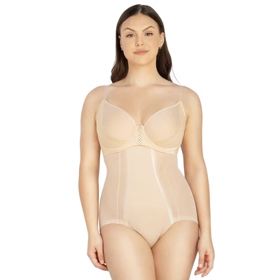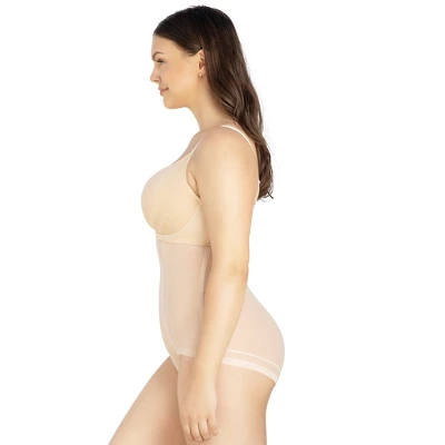 Using advanced bonded seam technology makes this shaper brief fit like a second skin. Breathable sheer stripe mesh with light tummy and back control panels provides a smooth shape and sleek design under clothing. High waist full coverage brief shape slims the body all the way up to the bra