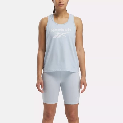 Wear your Reebok pride front and center. This women’s training tank top features a bold Vector logo to go with your sporty style. The single jersey cotton has a breezy feel that keeps you comfy through light workouts and long, lazy afternoons.